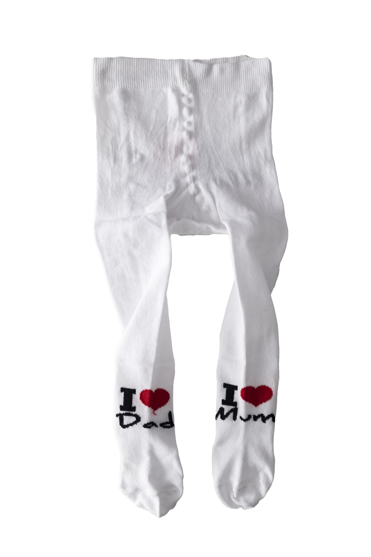 Pančušky UNI - biele na zadočku a oboch nožičkách prvky I LOVE MOM & DAD